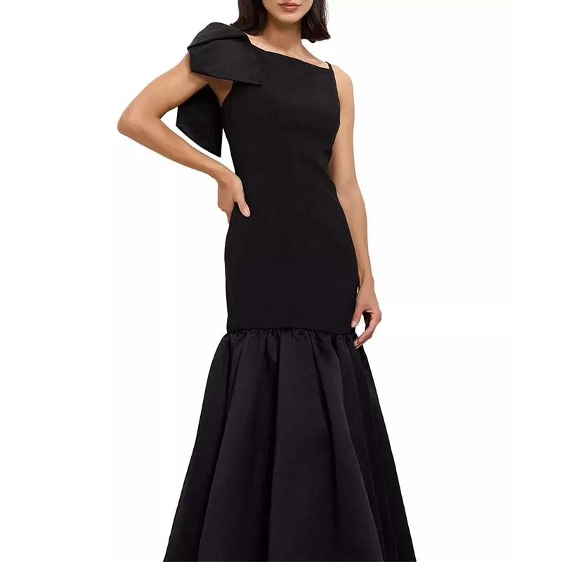 Popular Style Lady Evening Dress Elegant Oversized Bow Mermaid Flounced Hem Maxi Fit Dress Women's Dresses